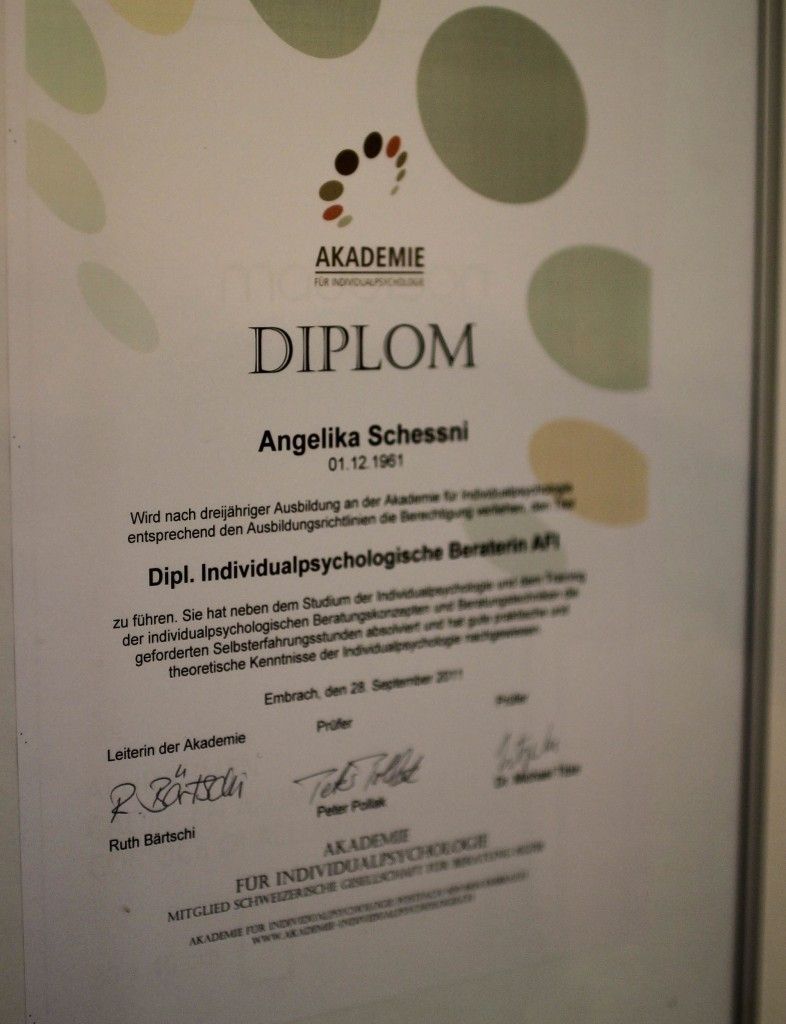 Ausbildung zur Individualpsychologischen Beraterin an der Akademie für Individualpsychologie Zürich